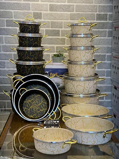سرویس قابلمه و تابه 15 پارچه کوشا koosh طرح ماربل