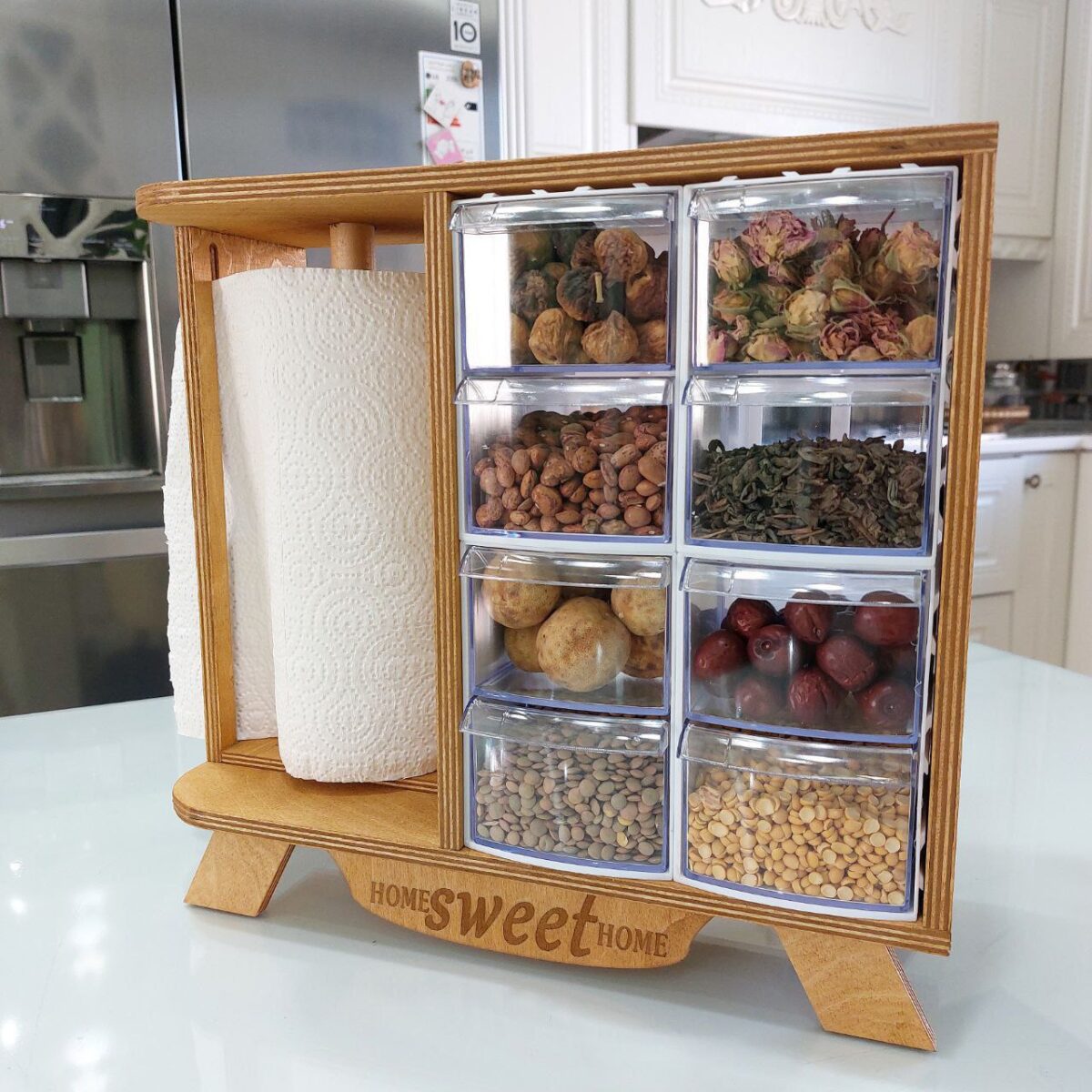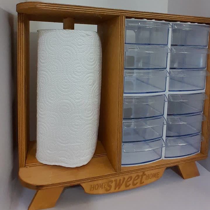 جا ادویه ۱۲ کشو با جا دستمال رولی دار