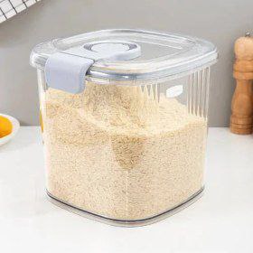 جا برنجی شالیز با ظرفیت ۱۰ کیلو گرم مناسب نگهداری برنج در آشپزخانه شیک شما می باشد. درب به راحتی باز می شود و با پیمانه برنج از ظرف برداشته شده و مجدد درب به حالت کیپ بسته میشود. با توجه به شکل مکعب این ظرف قرار گیری آن داخل کابینت و روی کابینت آسان می باشد. اگر تا به بابت هجوم حشرات به برنج نگران بودید میتوانید با قرار دادن یک حبه سیر در محل تعبیه شده بالای این جا برنجی این نگرانی را برطرف نمایید.
