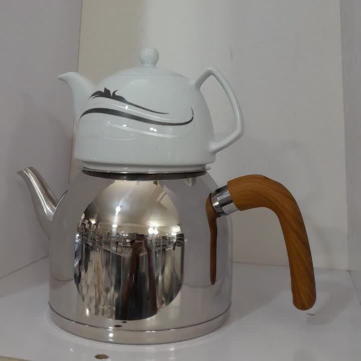 کتری قوری استیل دسته استیل آیسل AYSEL مدل ۲۰۰۷