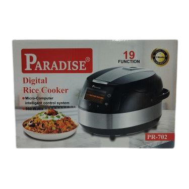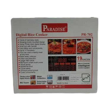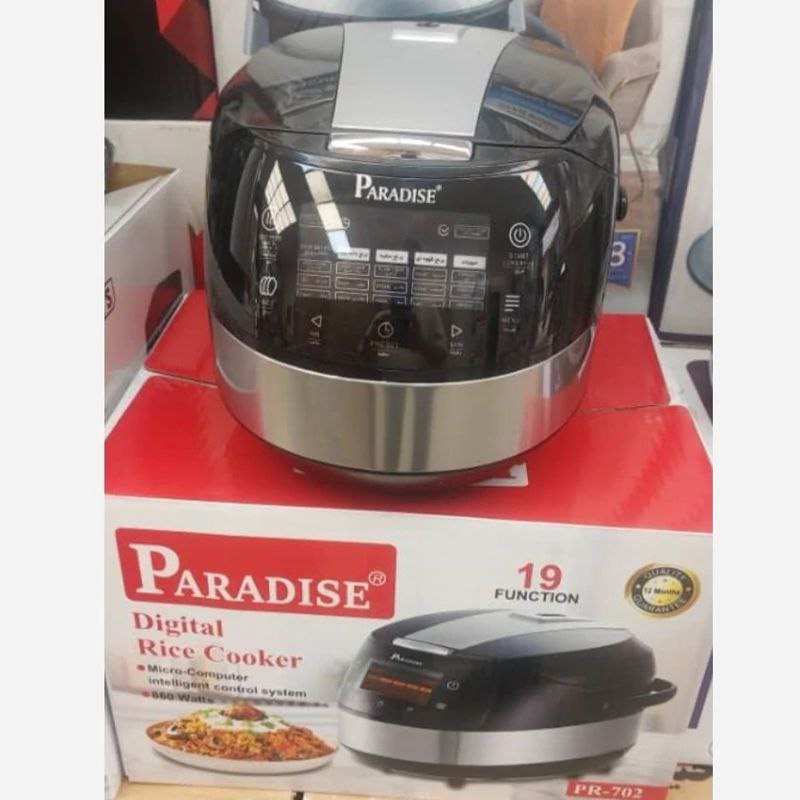 داشتن پلو پز برقی چندکاره عصای دست هر بانوی خانه در آشپزخانه می باشد. پلو پز خوب در مهمانی ها خیال آشپز را از پخت برنج با آبکش راحت میکند. پلوپز برقی پارادایس از نظر پخت برنج و سایر غذاها بسیار با کیفیت می باشد. جنس بدنه از استیل بوده و دارای ۱۹ برنامه پخت پیش فرض می باشد. که میتوان به پخت برنج_کیک_سوپ_سبزیجات_ماست_حلیم و تهیه انواع خورشت ها اشاره کرد.