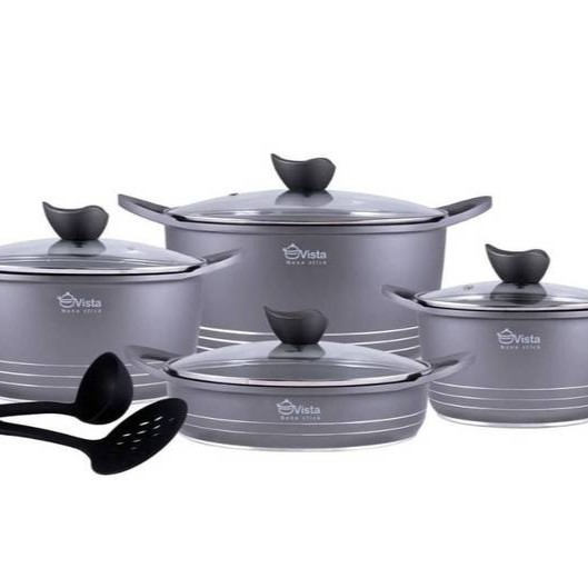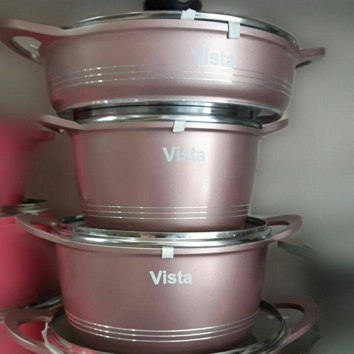 این سرویس از برند ویستا یکی از معتبرترین تولید کننده های ظروف چدن در سبک کلاسیک می باشد. ظروف از جنس آلومینیوم دایکاست ساخته شده که به اصطلاح در بازار چدن گفته میشود. روش ساخت این ظروف با روش دایکاست منجر به تراکم بالای مواد در ساخت شده و ظروف نسبت به ساخت کششی سنگینتر و مقاومتر و توزیع حرارت بصورت یکنواخت انجام میشود و غذا پخت بهتری دارد. این سرویس شامل سه قابلمه با سایزهای ۲۰-۲۴-۲۸ و یک تابه دو دسته سایز ۲۸ به همراه ۴ درب و دو عدد کفگیر می باشد.این سرویس در ۴ رنگ مشکی_طوسی_رزگلد و پوست پیازی ارایه شده است.جنس داخل ظروف گرانیت نچسب بوده و دسته ها به از جنس بدنه و بصورت یکپارچه با بدنه می باشند. کف ظروف طوری طراحی شده که حرارت شعله گاز پخش شده و به تمام نقاط حرارت یکنواخت برسد و پخت غذا را یکنواخت کند.